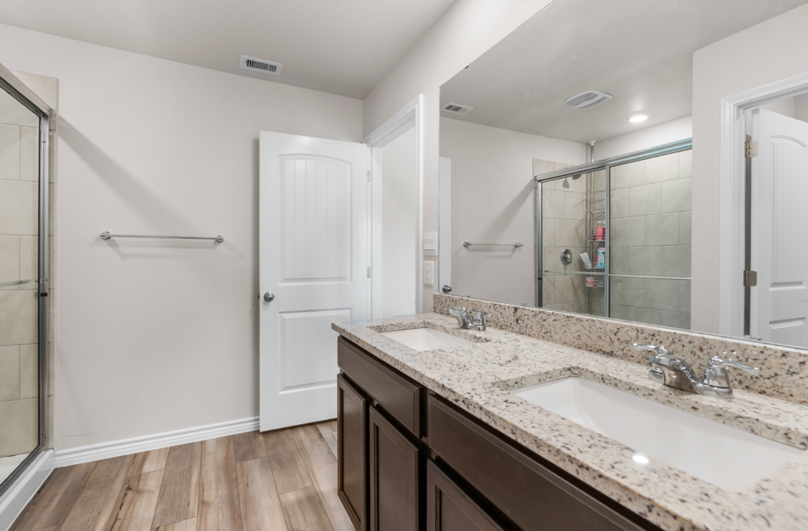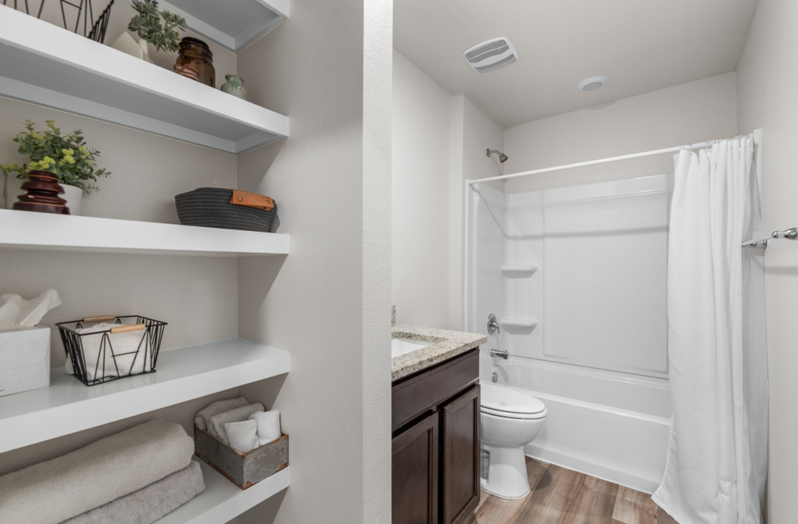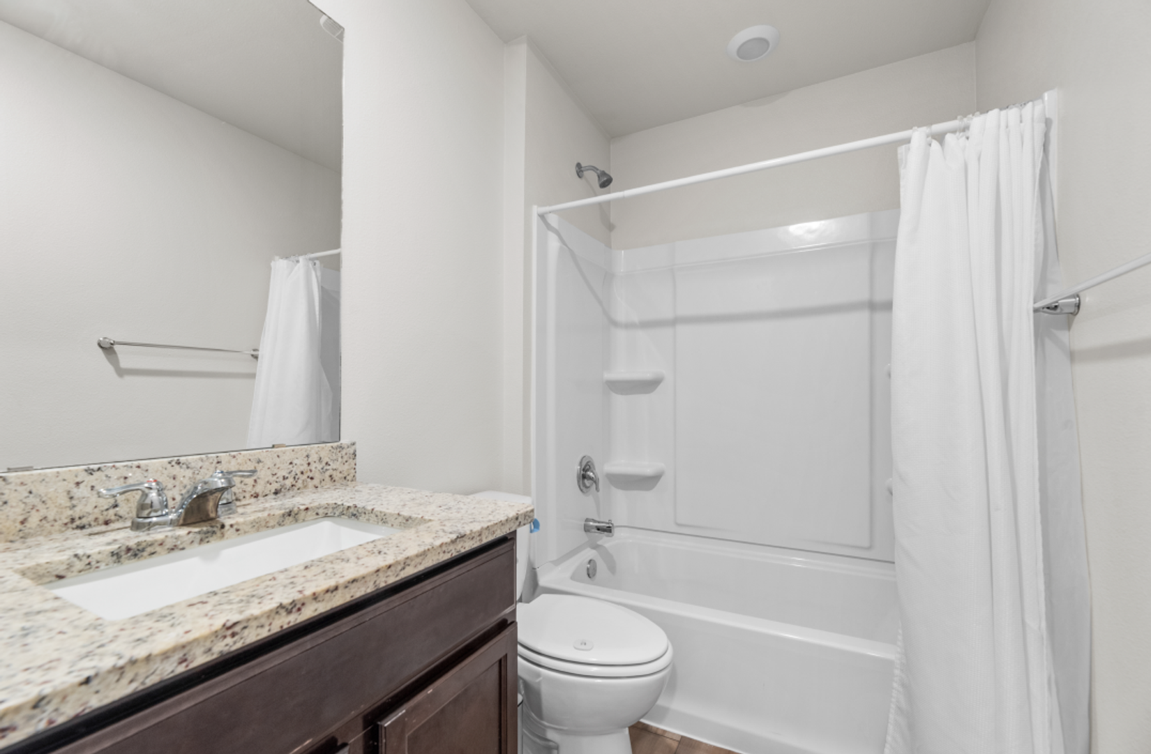 Features include granite countertops, full kitchen appliance package, and durable vinyl flooring throughout.