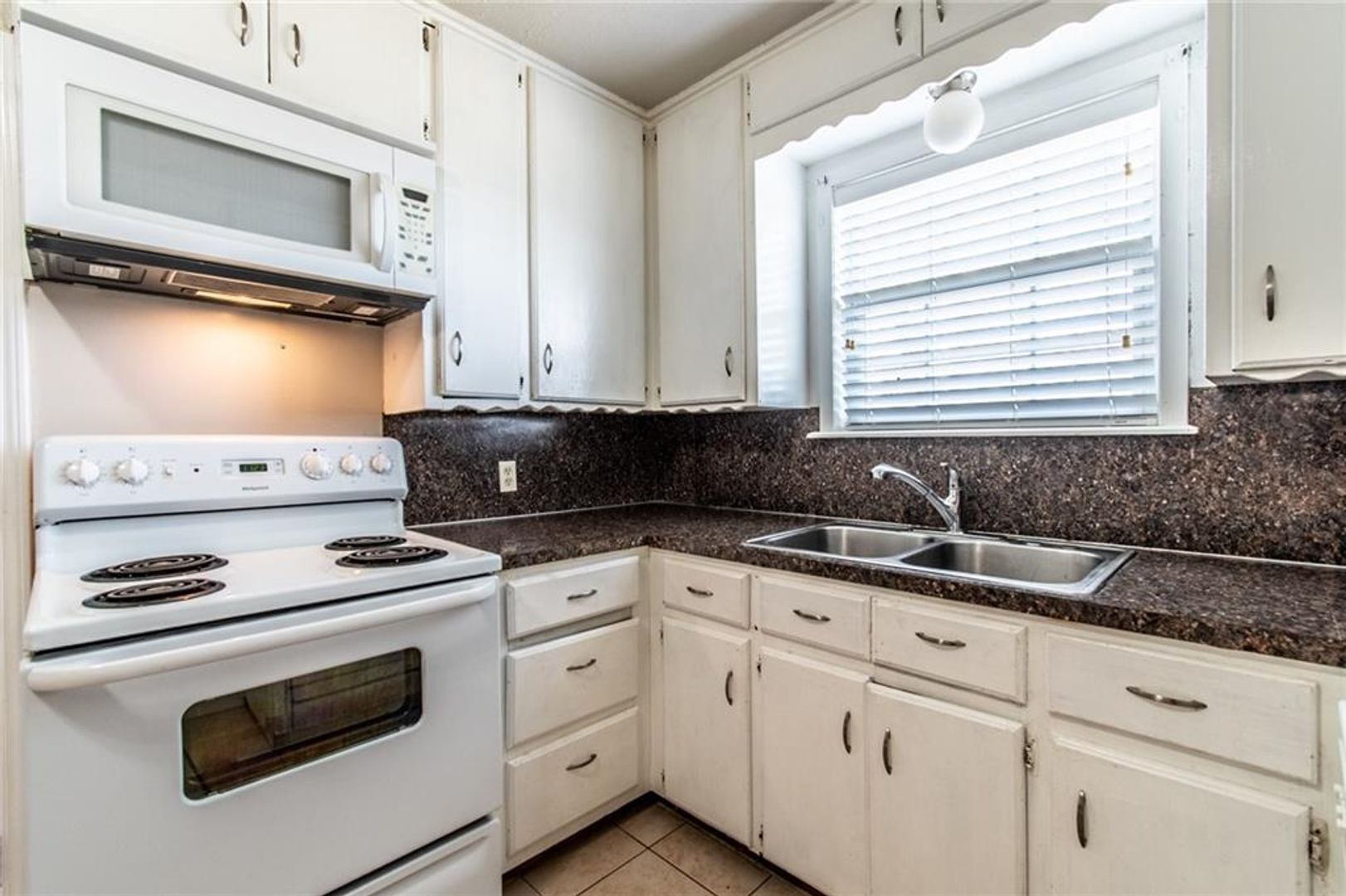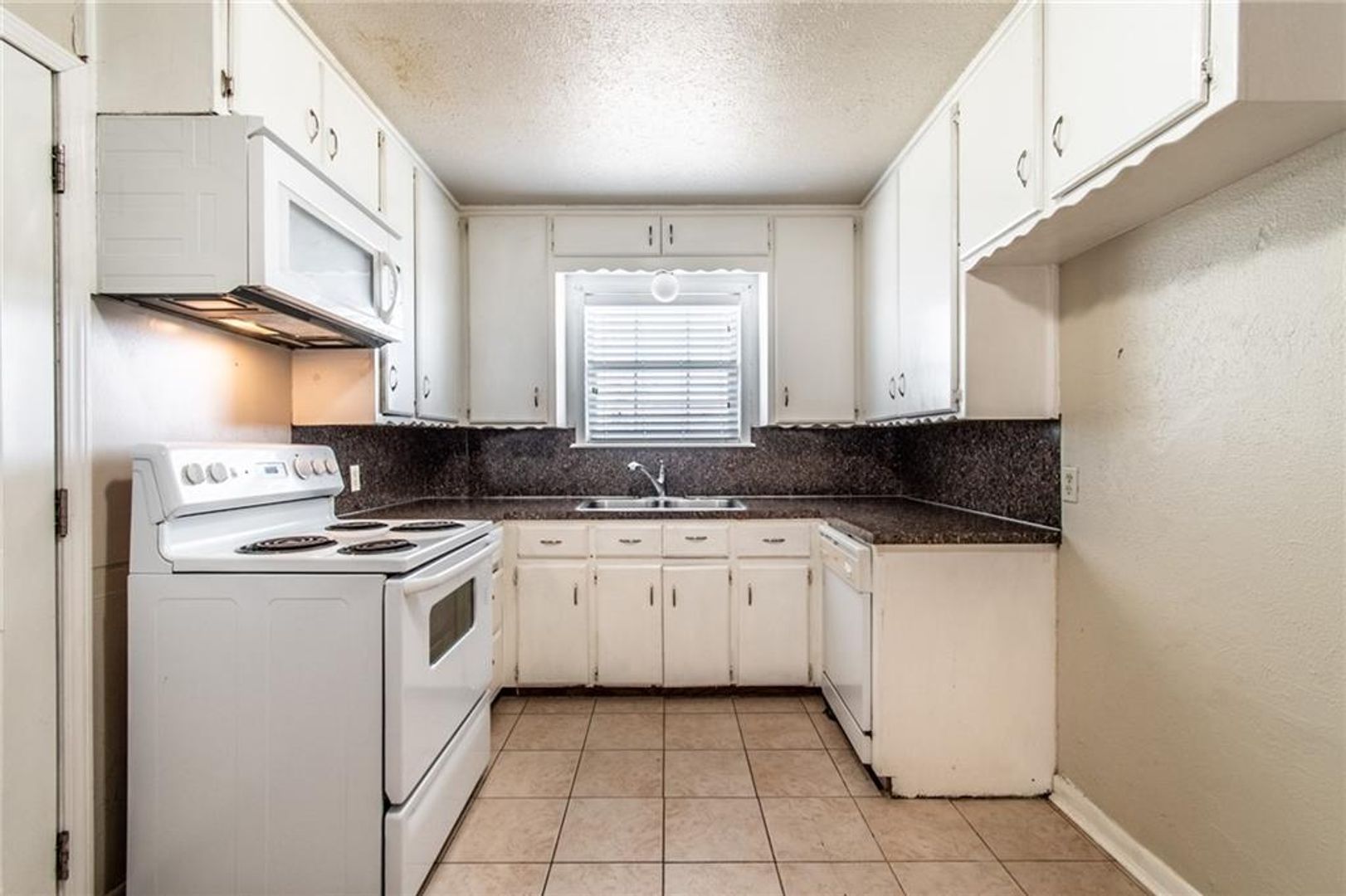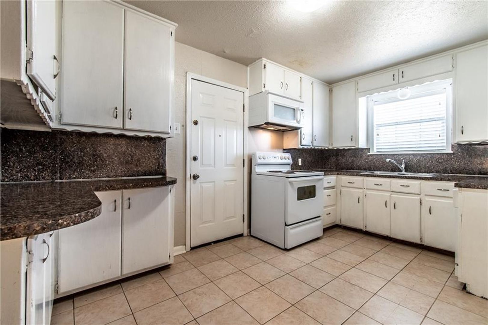 The kitchen includes an electric stove and microwave, and the home offers a 1-car garage with washer and dryer connections. Enjoy a spacious, fenced backyard—perfect for outdoor activities or pets.