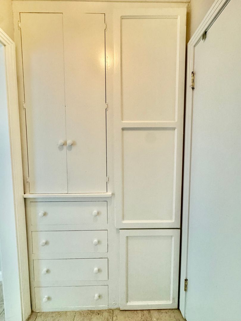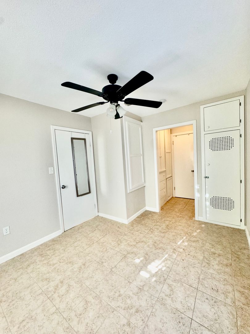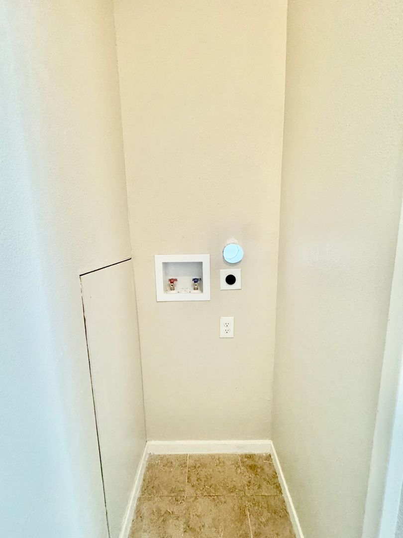 The spacious primary bedroom offers ample room, and the Jack-and-Jill bathroom includes built-in shelving for added storage. Washer and dryer connections are available for stackable units. Along with a small enclosed patio area.
