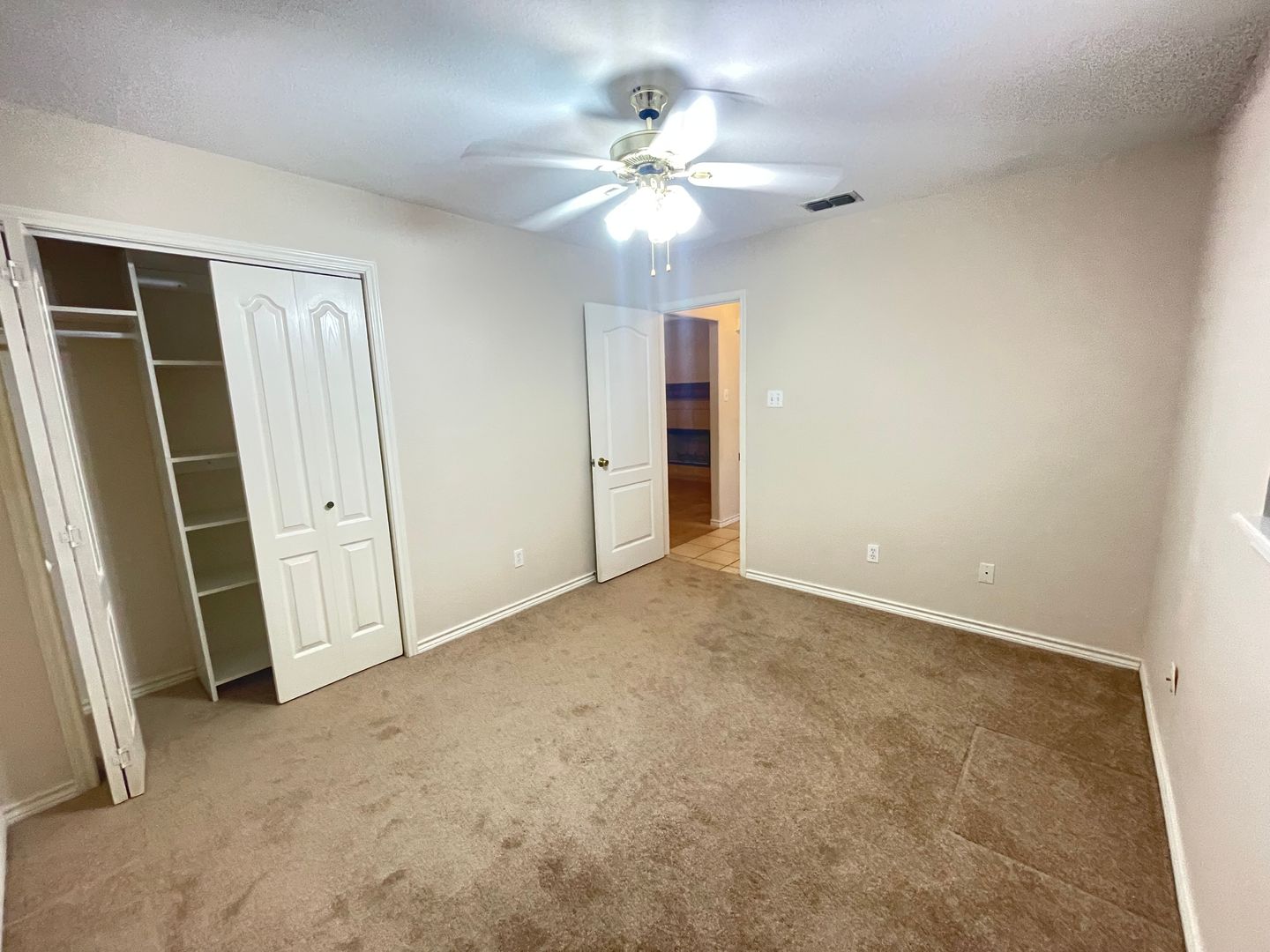 Spacious 3-bedroom, 2-bath home featuring a split floor plan and plenty of modern comforts. Enjoy a fenced backyard perfect for pets, an enclosed patio area, and the durability of tile flooring with cozy carpeted bedrooms.