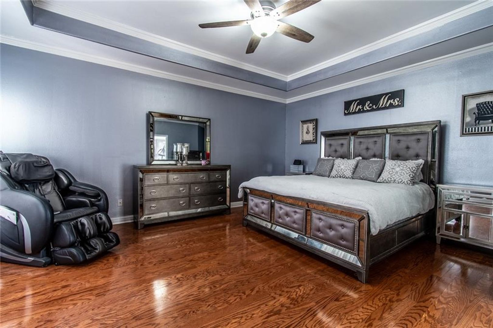 The primary suite, located on the main level, offers a serene retreat with a jetted tub, separate shower, and walk-in closet. Upstairs, three spacious bedrooms provide ample space for family or guests.