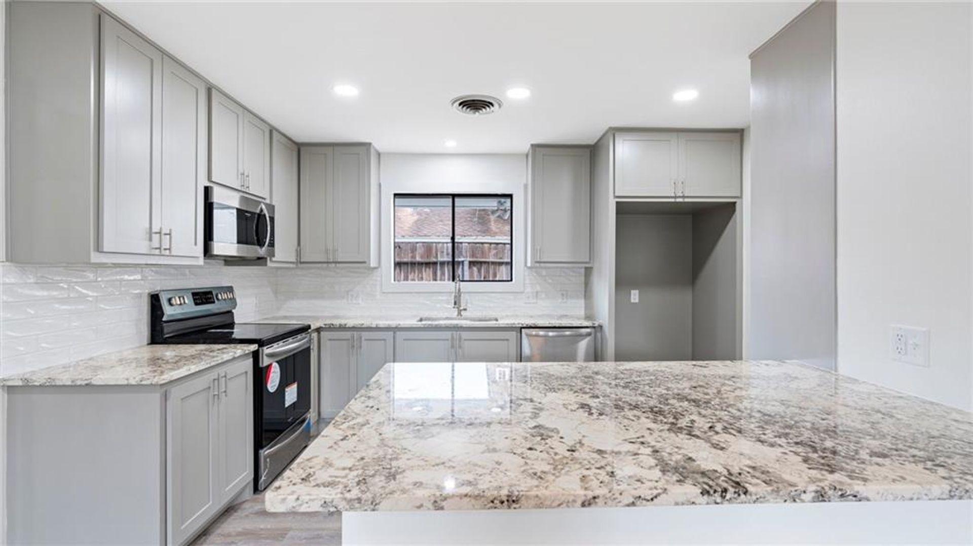 Completely updated home in Brookdale Park. Enjoy the established neighborhood lifestyle in a "like new" home! This home features 4 large bedrooms. Primary retreat will leave you breathless with this spa suite and oversized walk-in closet...it's a whole other ROOM! The shower is large enough to throw a party, and the built in dresser is something you didn't even know you needed...BUT IT'S HERE! The Kitchen features quartz counter tops, custom cabinets, designer backsplash, and stainless appliances. The split floor plan has 2 living spaces, an additional bedroom, large mudroom wrapped in shiplap and a full guest bathroom downstairs also. Upstairs are the additional 2 large bedrooms and full bathroom with tiled walk--in shower. There is new paint, new flooring, new cabinets, new AC, .... and it just keeps going. Enjoy the rear wrap garage behind the security gate, and the large back yard for family fun.