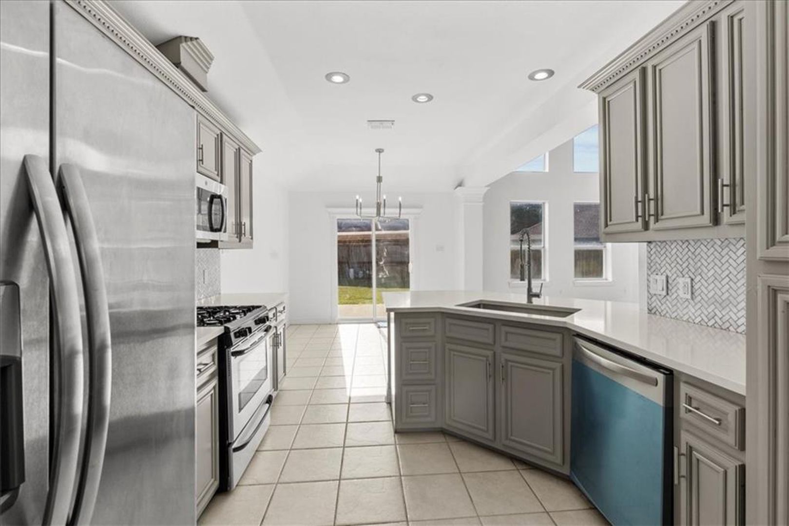 Outside, classic brick accents frame an expanded yard, ideal for outdoor entertaining. This home seamlessly blends modern updates with everyday comfort.