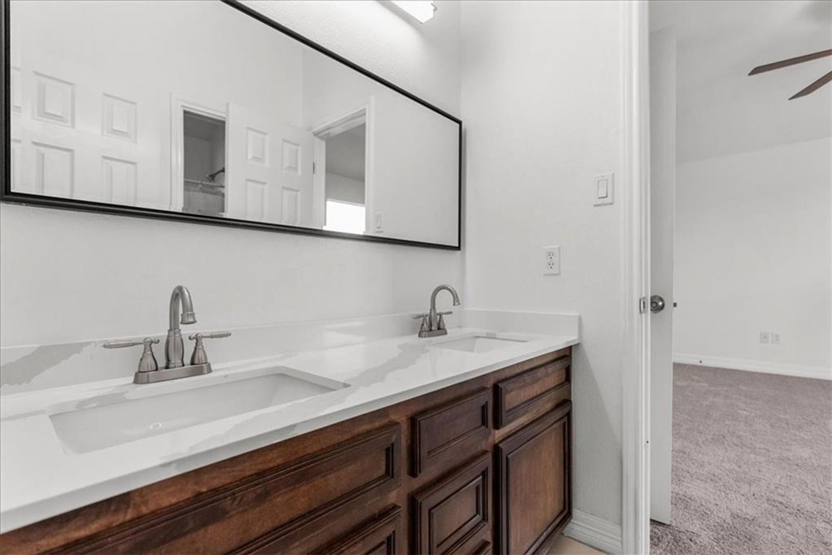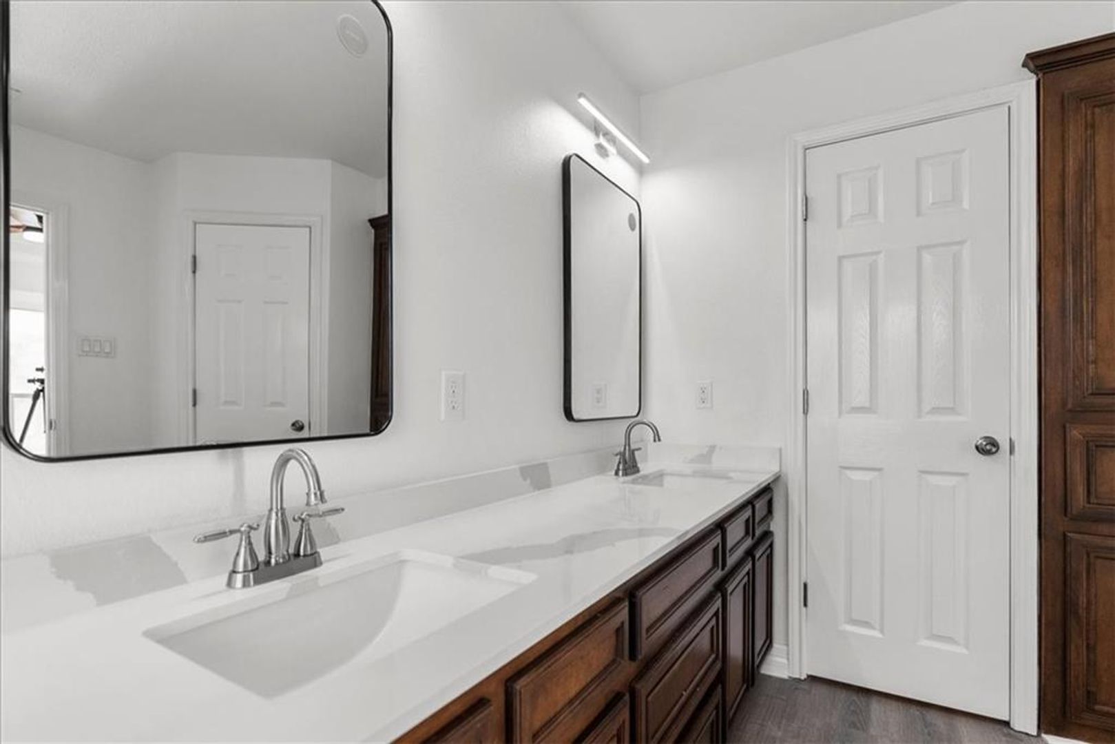 The primary suite is a peaceful retreat, complete with a reading nook, walk-in closet, and spa-like bathroom featuring a large tiled shower and dual vanities.