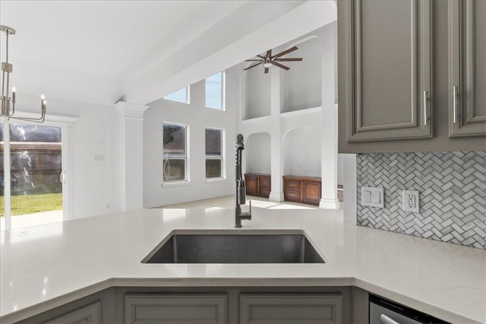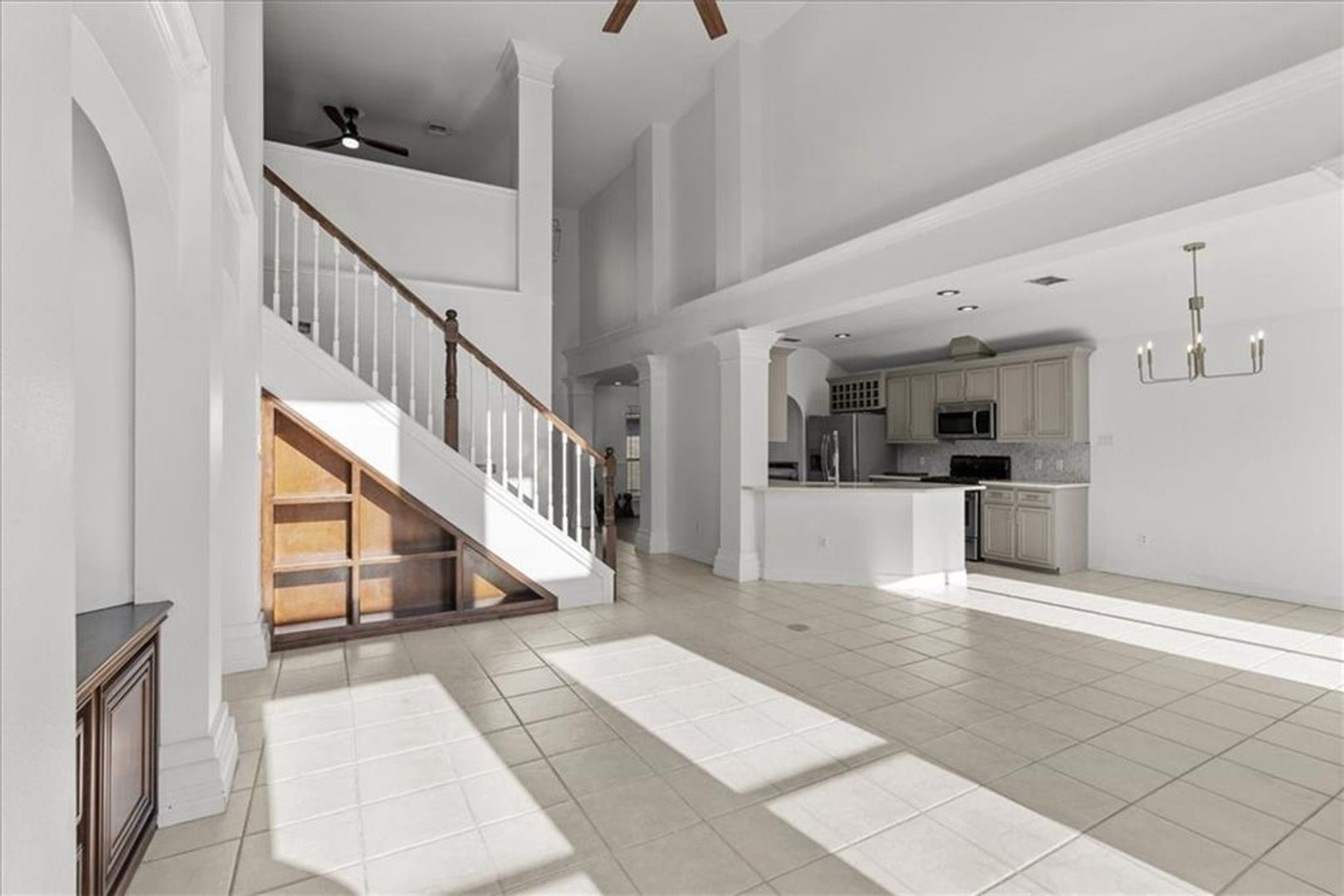 Over 2,000 sq. ft., built in 2003, this 3-bedroom, 2.5-bath home is tucked away in a quiet cul-de-sac. Freshly painted inside and out, the two-story residence offers an open-plan design with a main living area featuring soaring 20-foot ceilings.